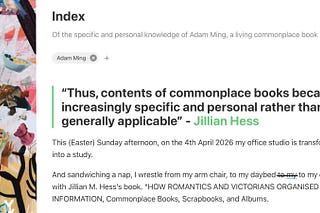 Index of the specific and personal knowledge of Adam Ming, a living commonplace book