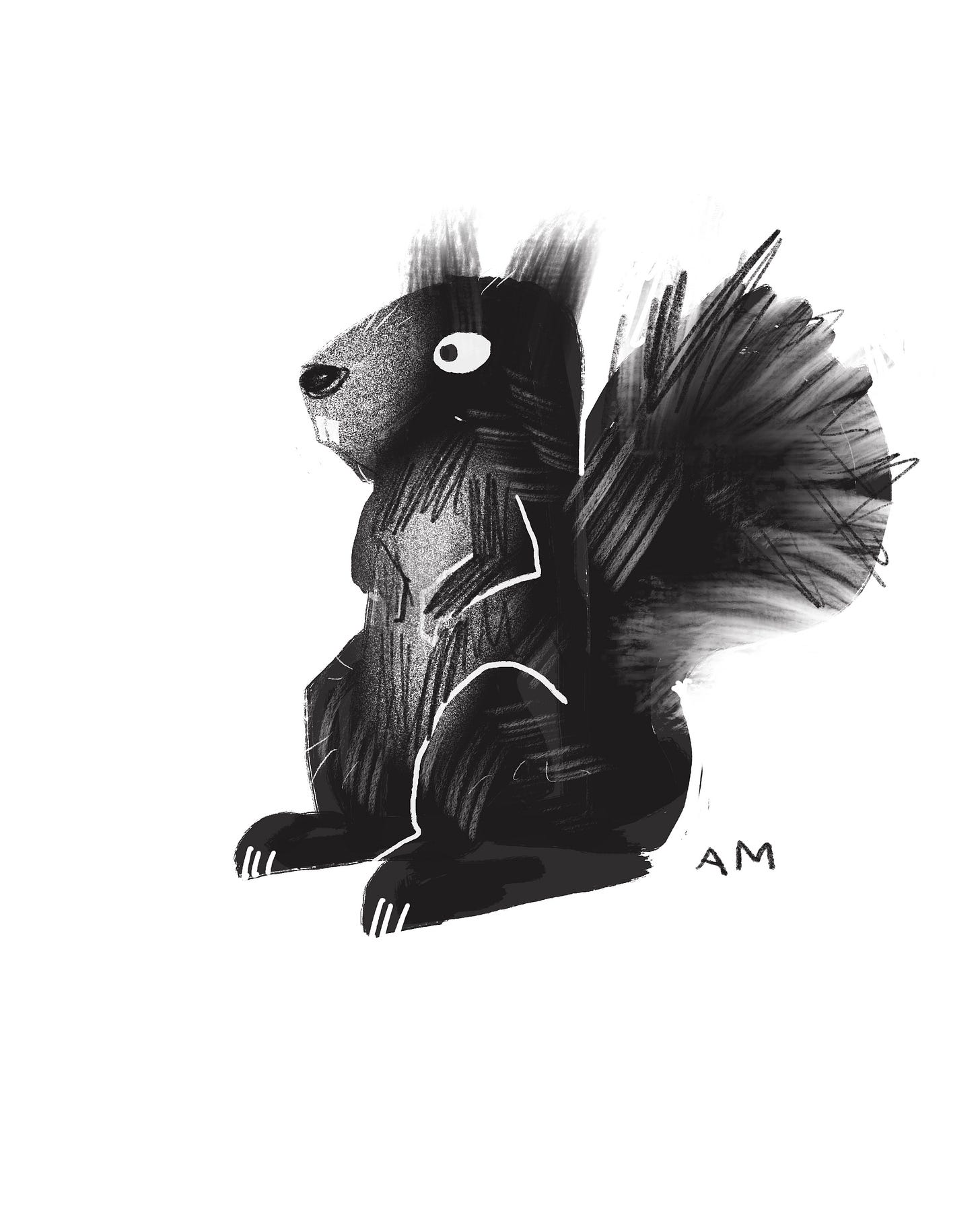 Pick an animal or everyday object and draw a simple representation of the thing, an icon that when someone looked at it would call it out by name, I’m choosing a squirrel.
