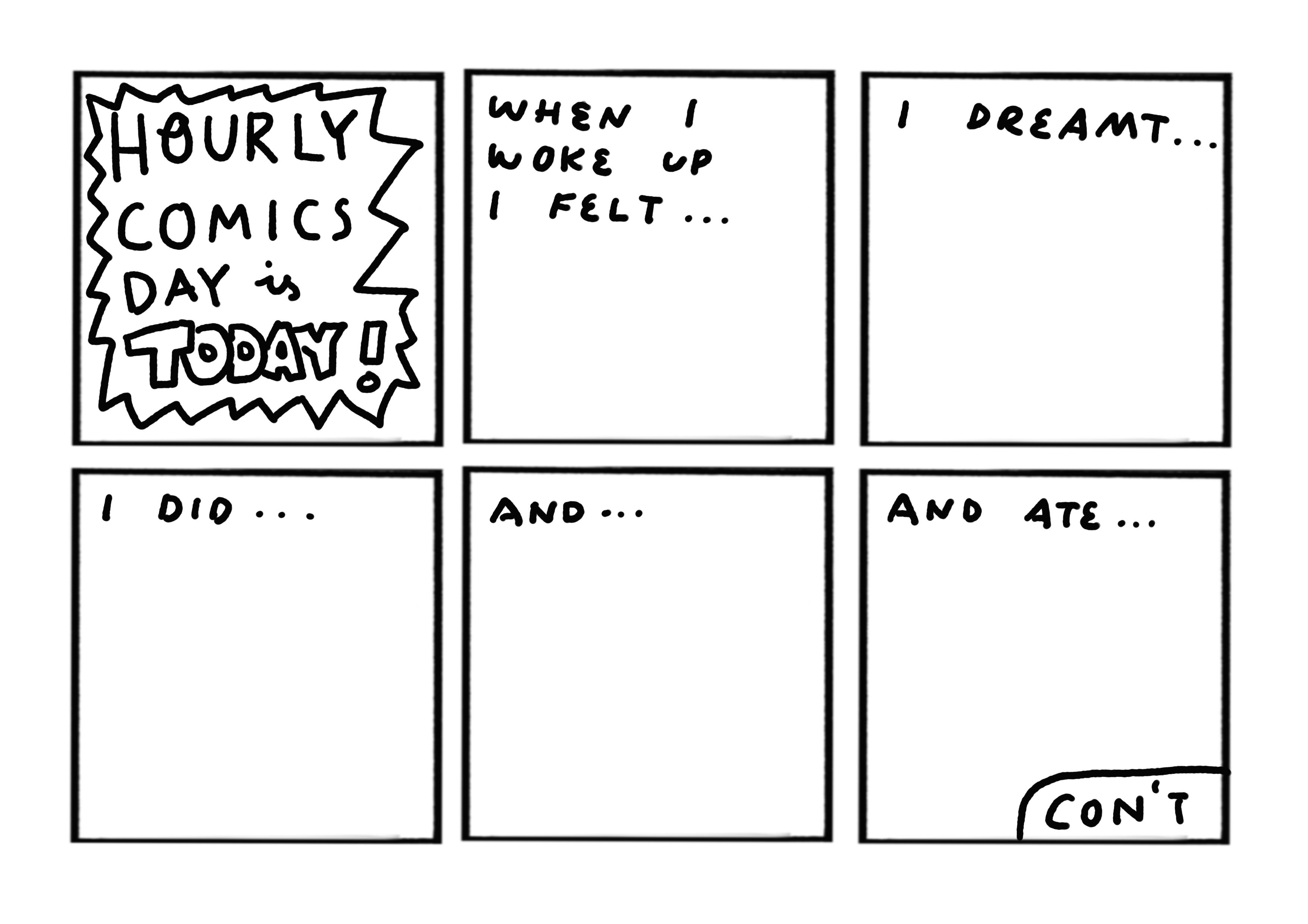 Hourly comics day, is a yearly event on February 8th where people around the world draw a comic panel or page for every hour they are awake. Anyone can participate, but the event is very popular in the English-speaking indie comics world.