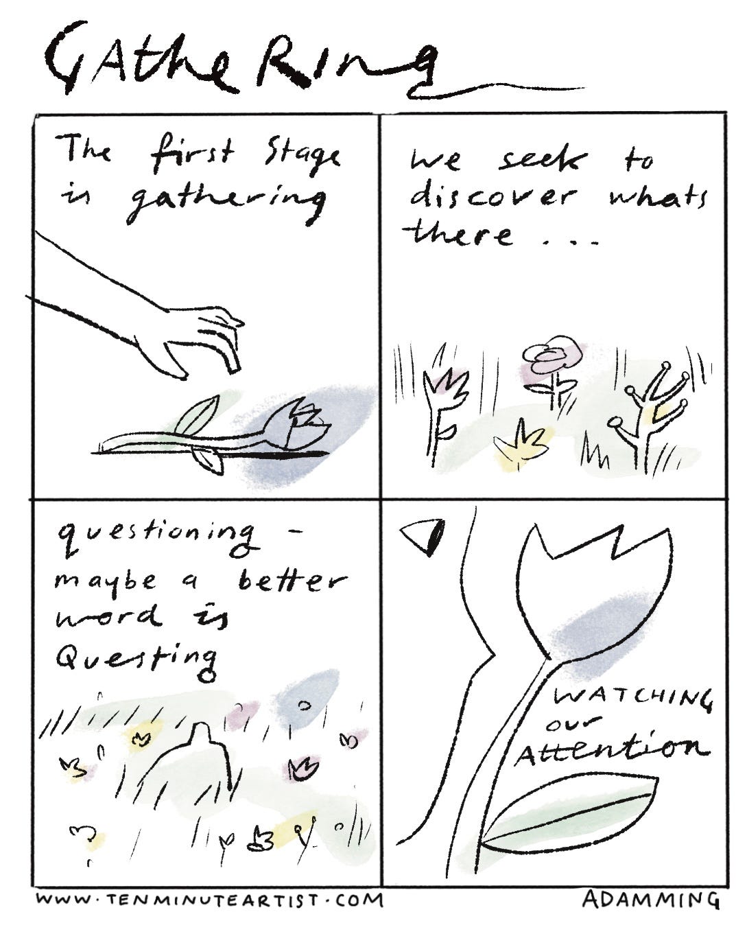 Often attention shifts from one flicker of a thought to another. Following it by writing down what I notice creates a map of the territory. Sometimes I noticed a common thread a distant, laterally related thought.