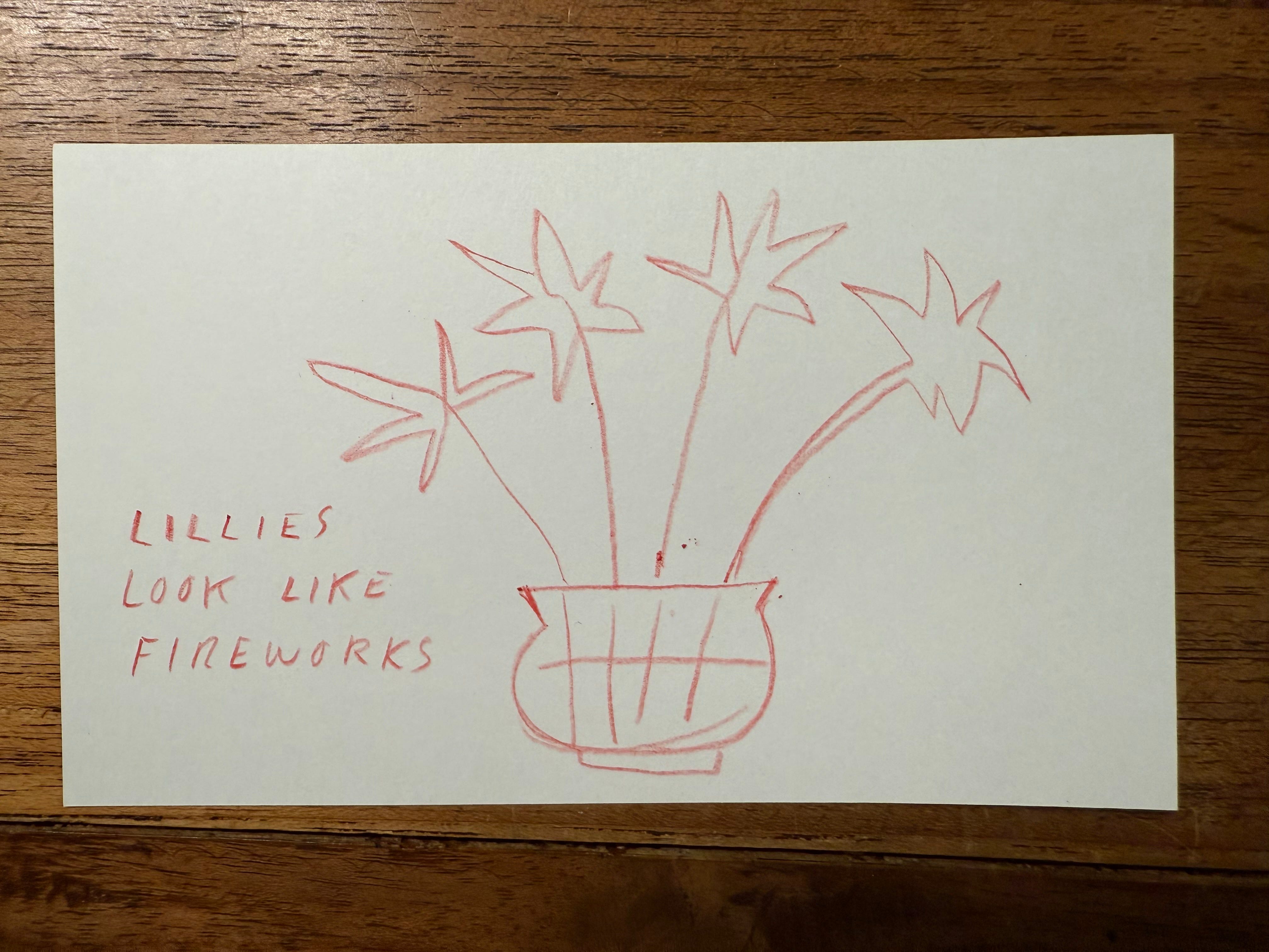 I have some Lillies in a vase now but these were drawn from memory. It’s not great as a drawing but I felt I got something out of it, some things I can build on.