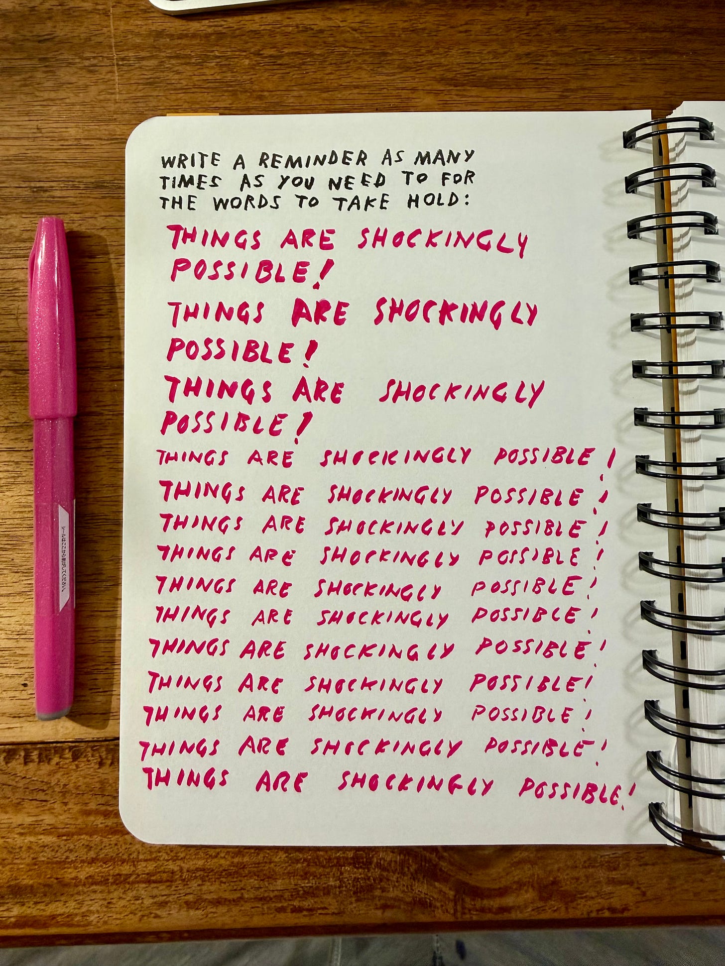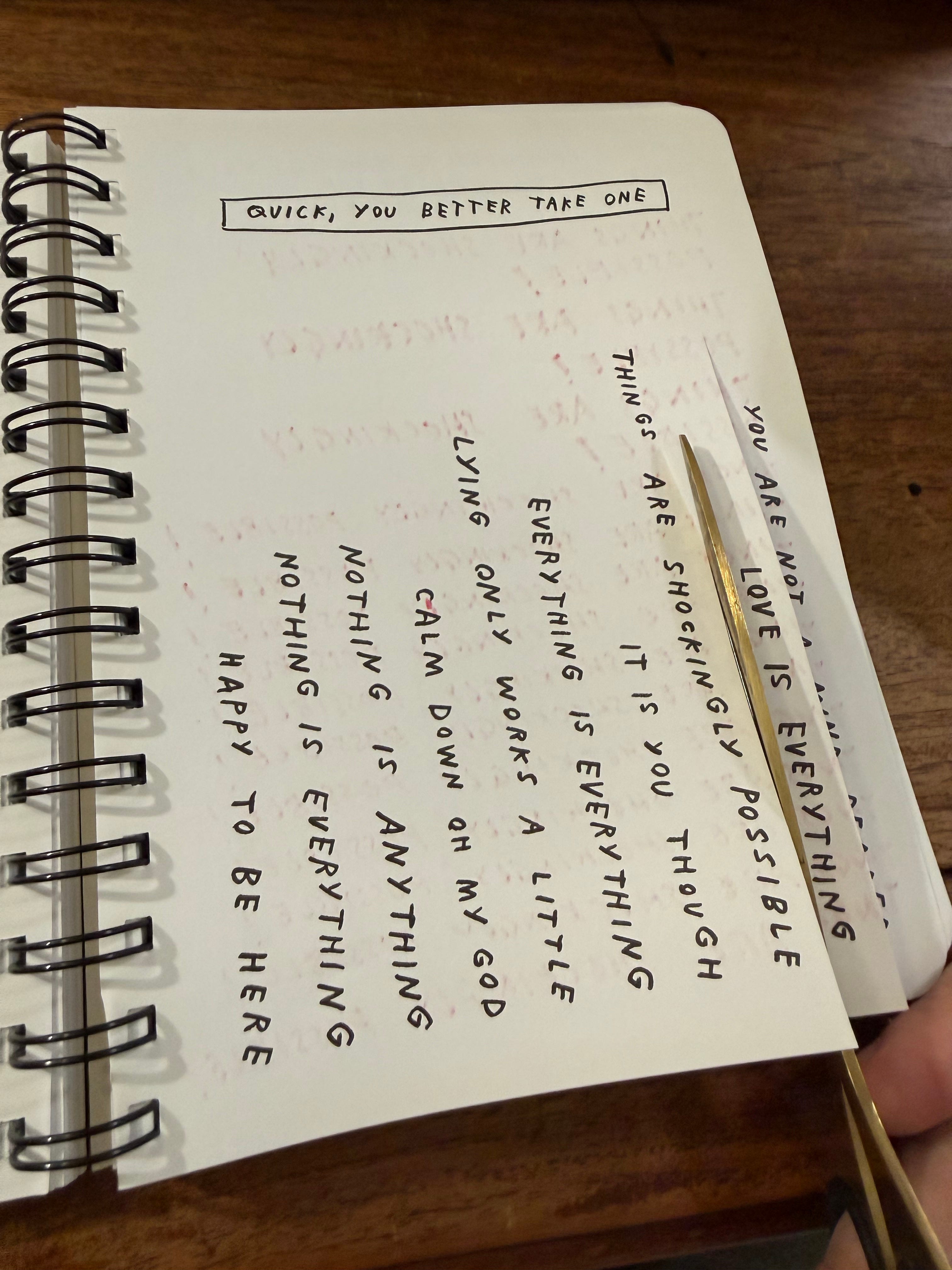 This wasn’t a drawing prompt, but I was happy to spend by creative time doing this. The following page of this book encourages us to write lines, I think they are connected. You take a line from the ‘take one’ page, and you repeat it or write reminders, to help it stick.