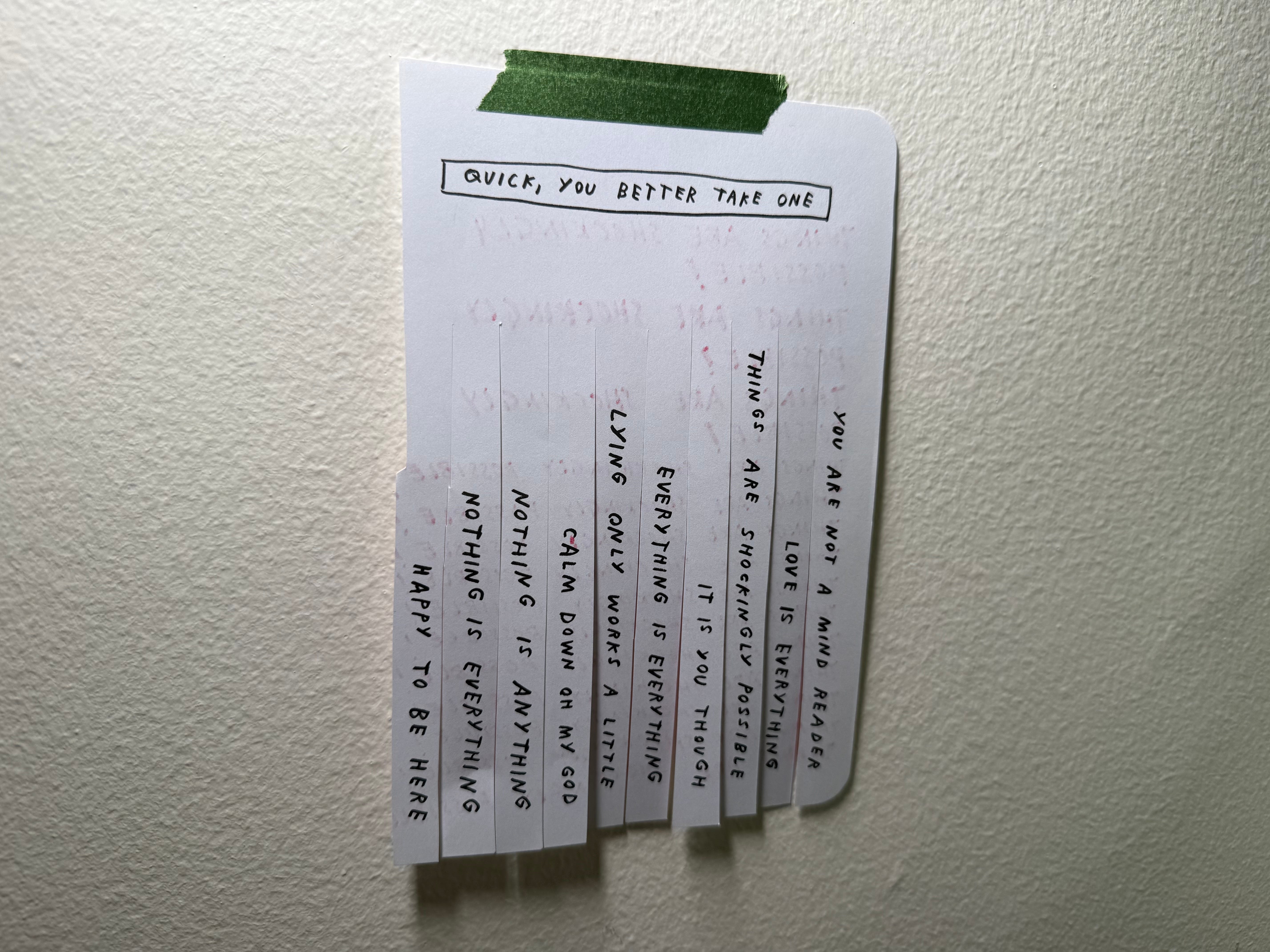 Think of it as a fortune cookie without the cookie. Alternatively you can turn it into a things to draw list!