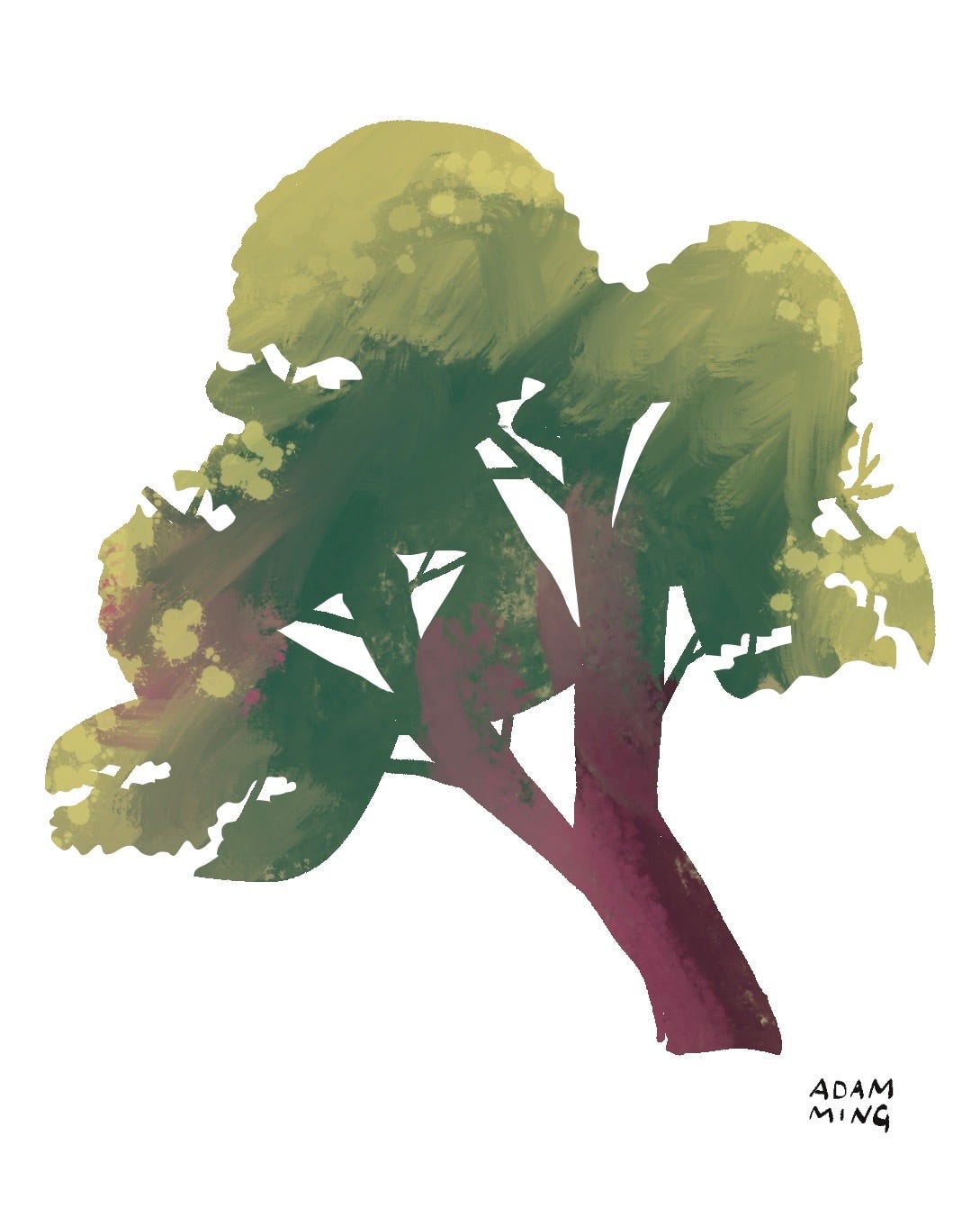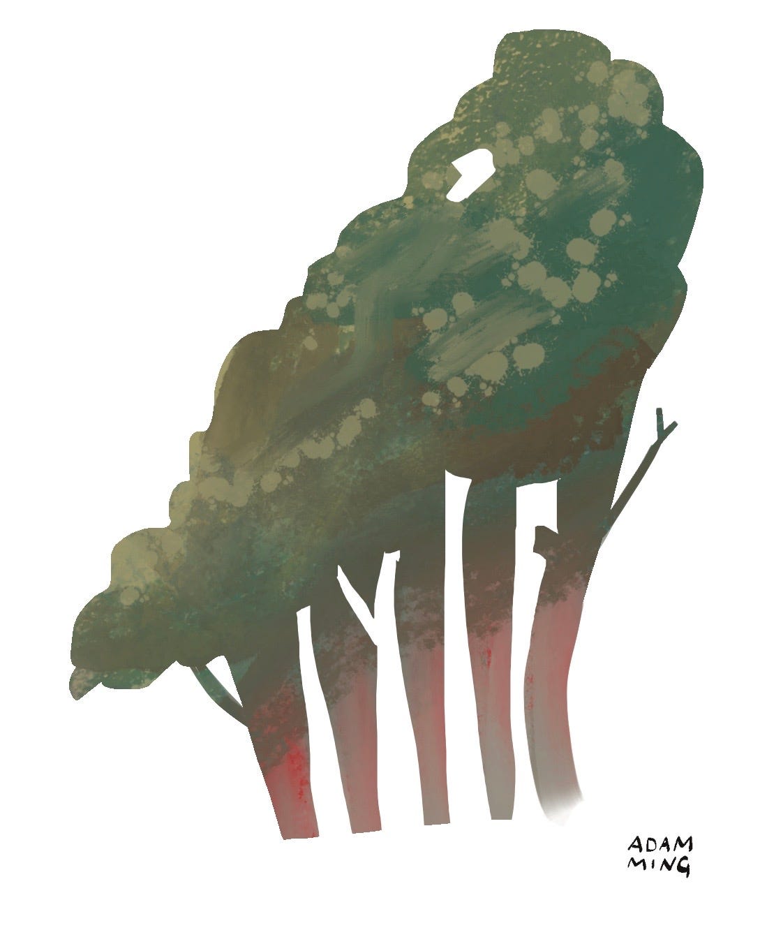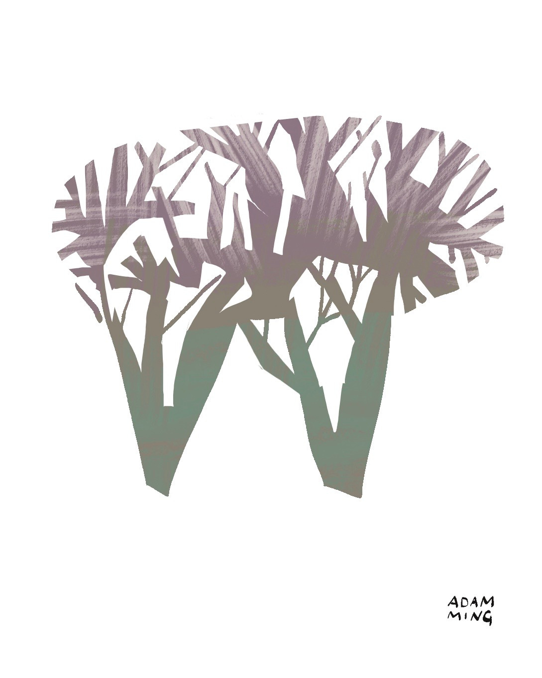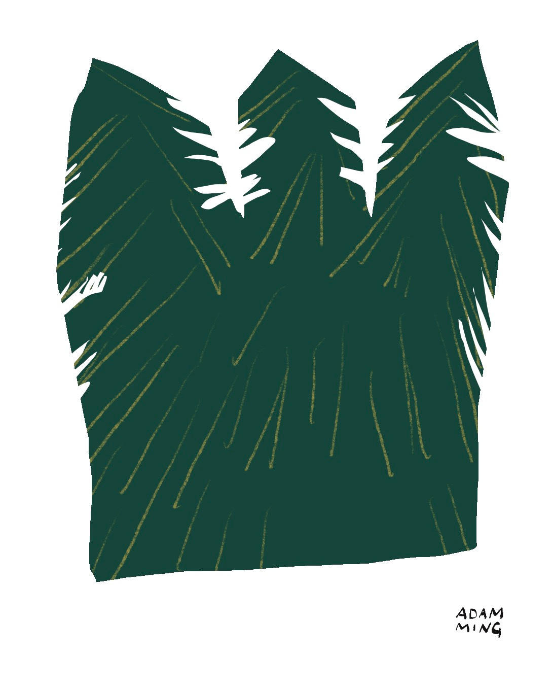It used to be trees as far as the eye can see, until a new condominium block started construction, now it’s trees all the way and a crane. Today I decided to draw some of those trees. I worked digitally but used a paper cut style.